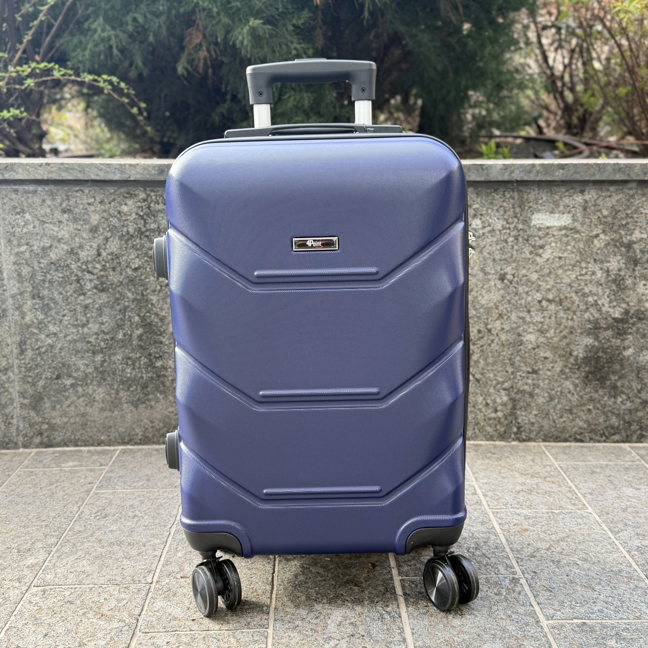 Валіза дорожня пластикова 4Points ONE маленька S з висувною телескопічною ручкою на подвійних колесах Темно-синій