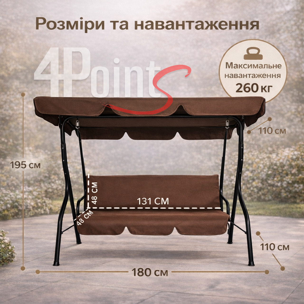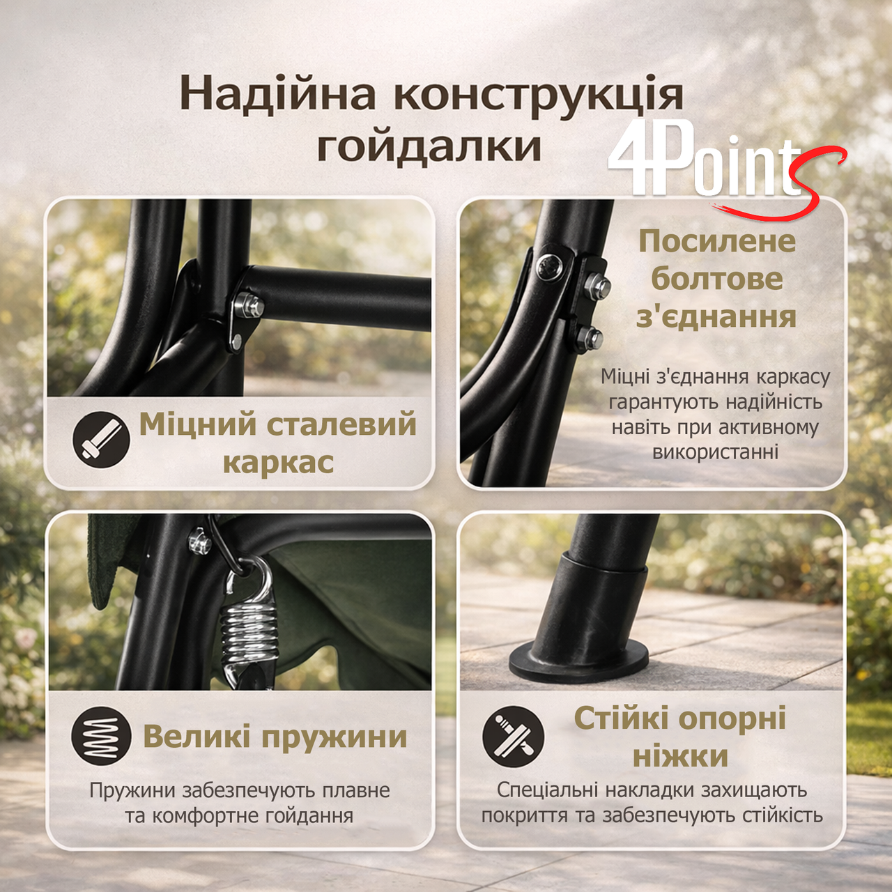 Садова гойдалка 4Points Garden створена для тих, хто цінує комфорт і спокійний відпочинок на природі.