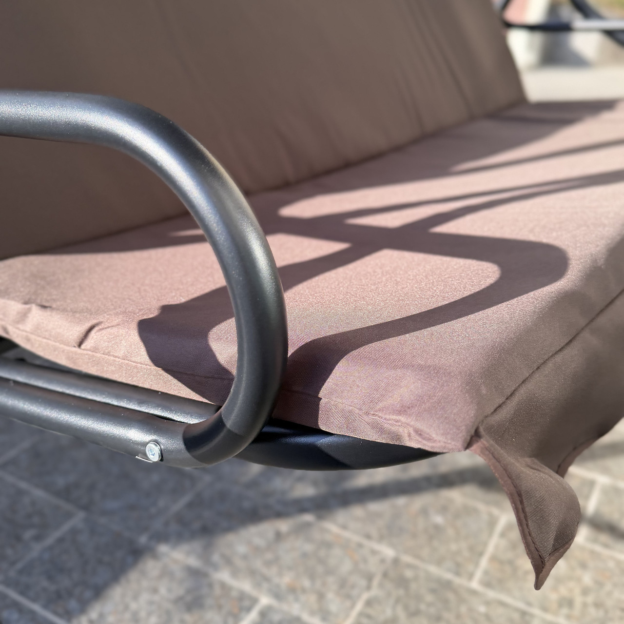 Велике сидіння дозволяє зручно розміститися трьом дорослим людям, а м’який матрац підвищує комфорт навіть під час тривалого відпочинку.