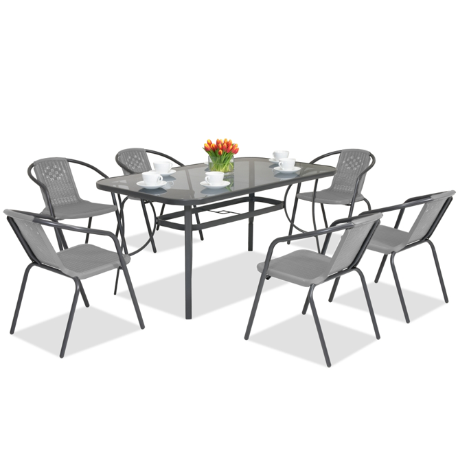 Цей комплект меблів ідеально підійде для організації відкритих зон відпочинку на дачі, в саду, на терасі або у кафе. Завдяки сучасному дизайну та якісним матеріалам набір меблів є практичним, надійним і стійким до погодних умов.