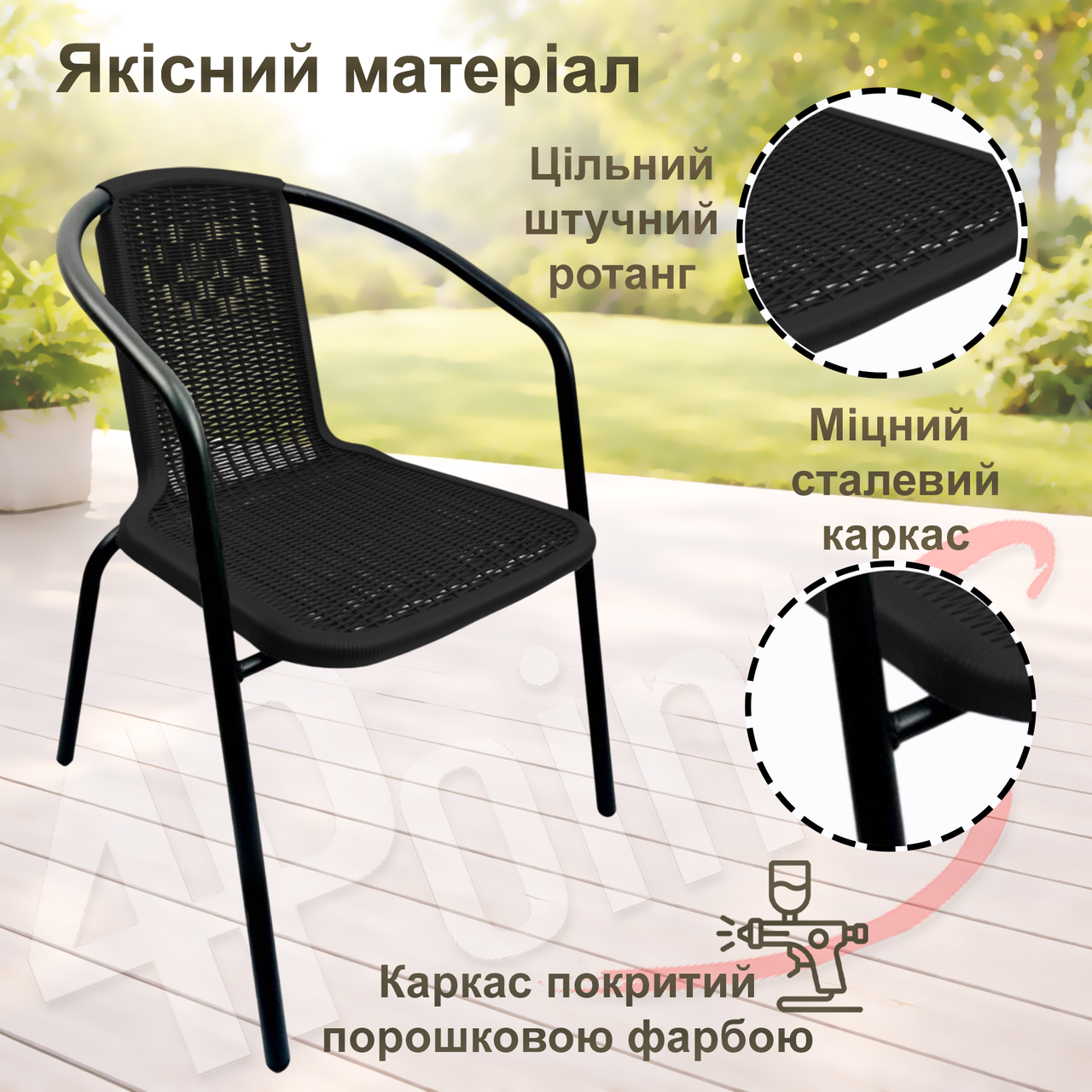 Підходить для облаштування зони відпочинку в саду, на дачі, балконі, терасі, літньому кафе або відкритому майданчику, на вулиці. Комплект прекрасно доповнить інтер’єр вашого саду або кафе, забезпечуючи затишок і комфорт.