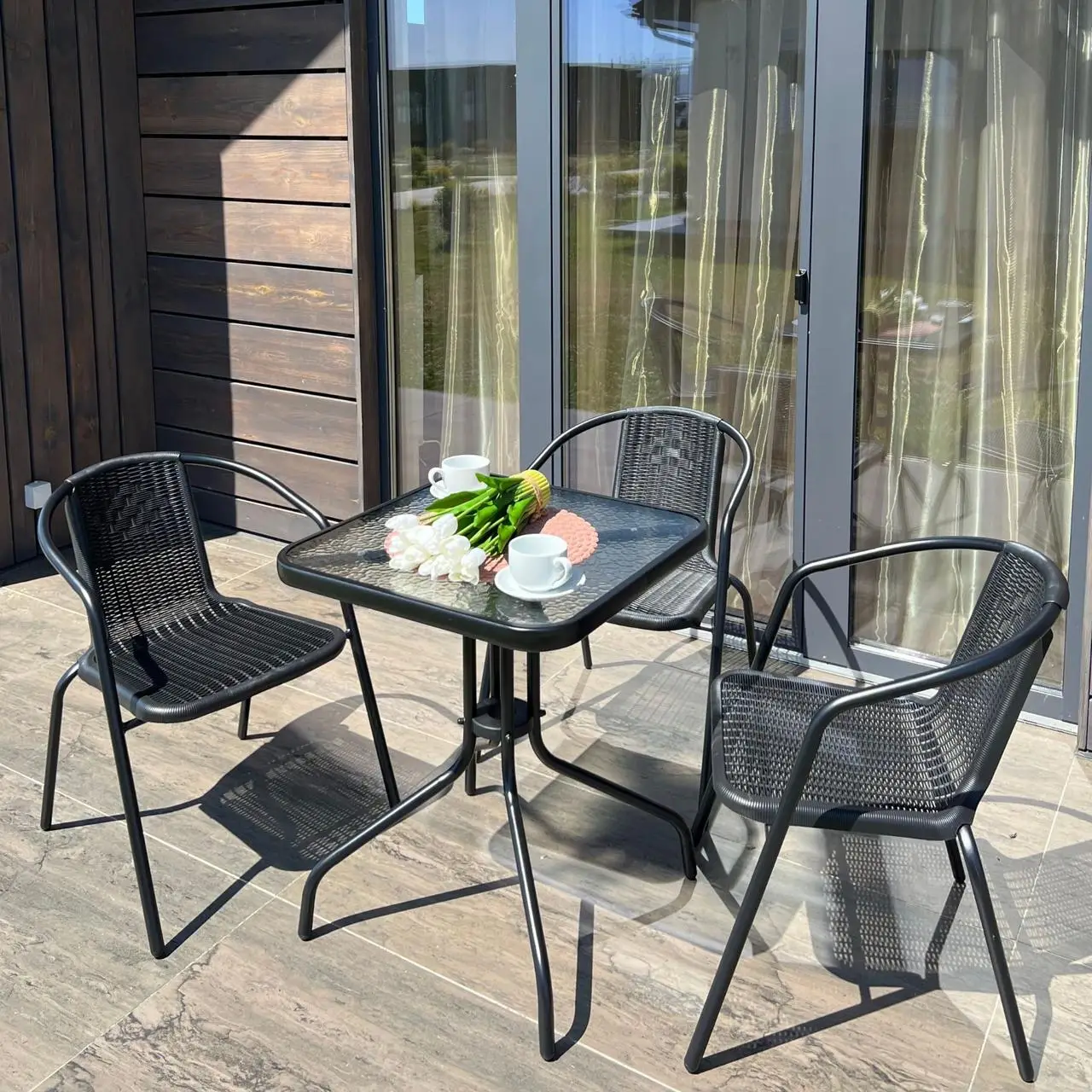 Набір комплект садових меблів: квадратний стіл розміром 60х60 см із міцною стільницею із загартованого скла і 3 крісла з ротанга для саду, кафе, тераси, балкона, вулиці