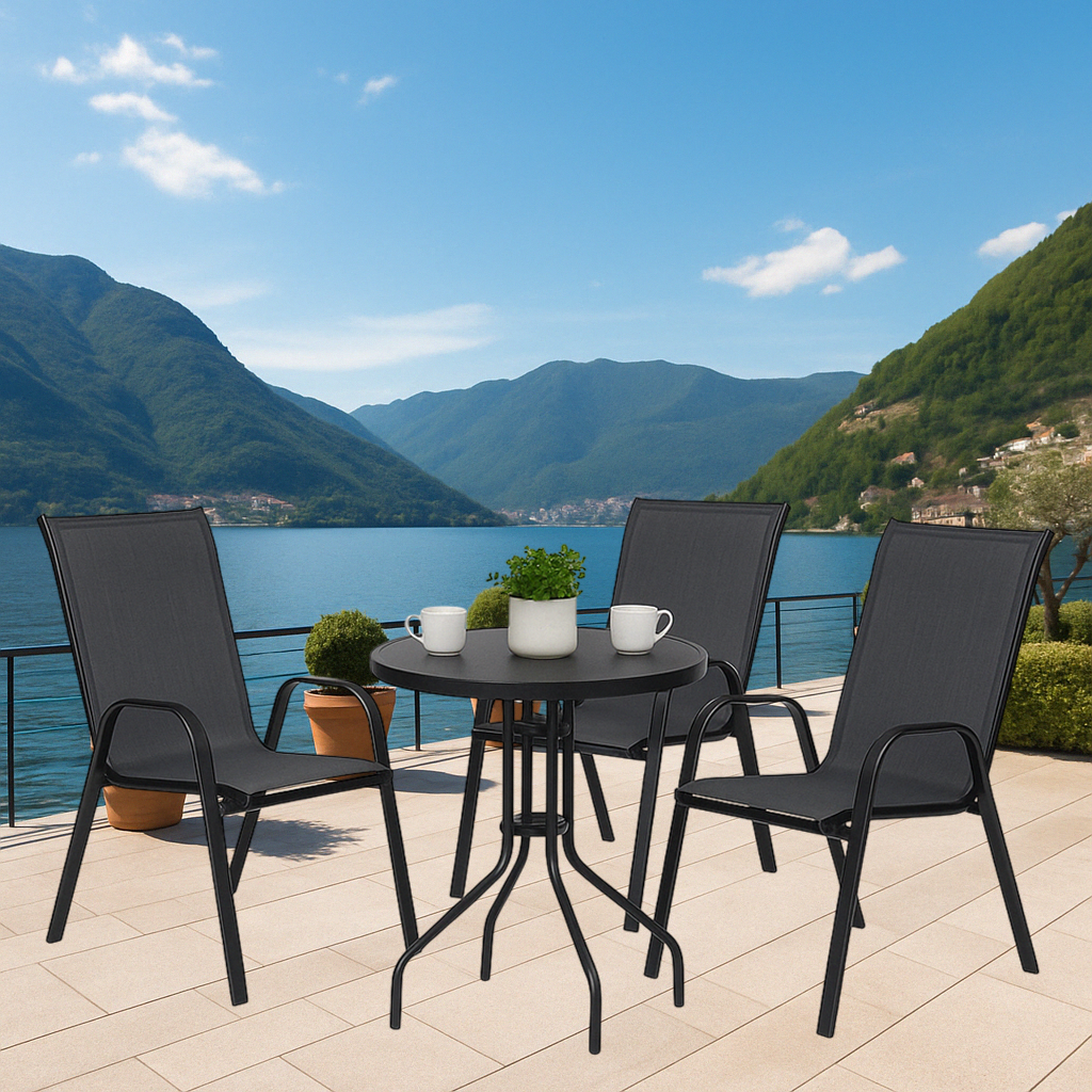 Набір садових меблів Como-3: круглий стіл з металевою стільницею 60 см та 3 стільці з текстилену для саду, тераси, балкона, кафе