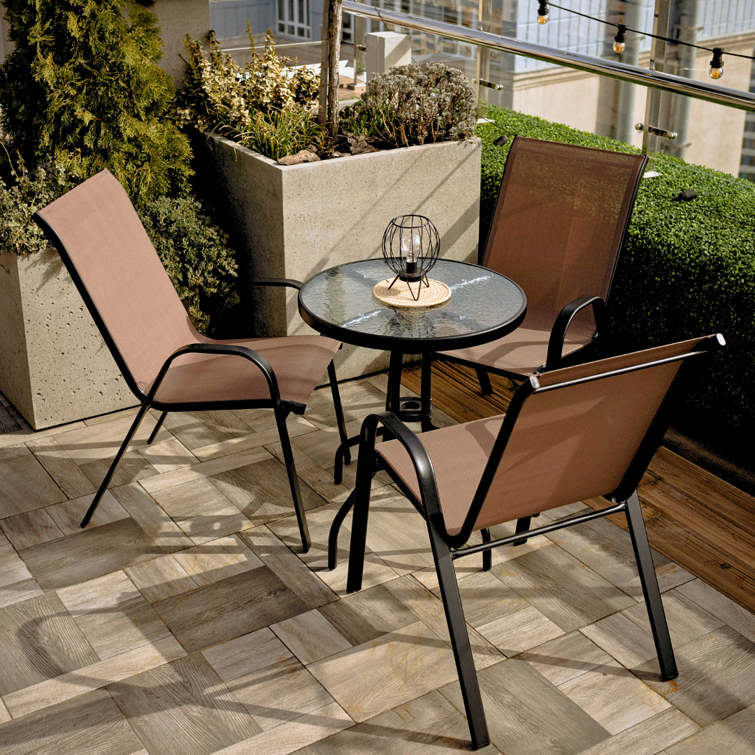 Набір садових меблів Udine-3: круглий стіл зі скляною стільницею 60 см та 3 стільці з текстилену для саду, тераси, балкона, кафе