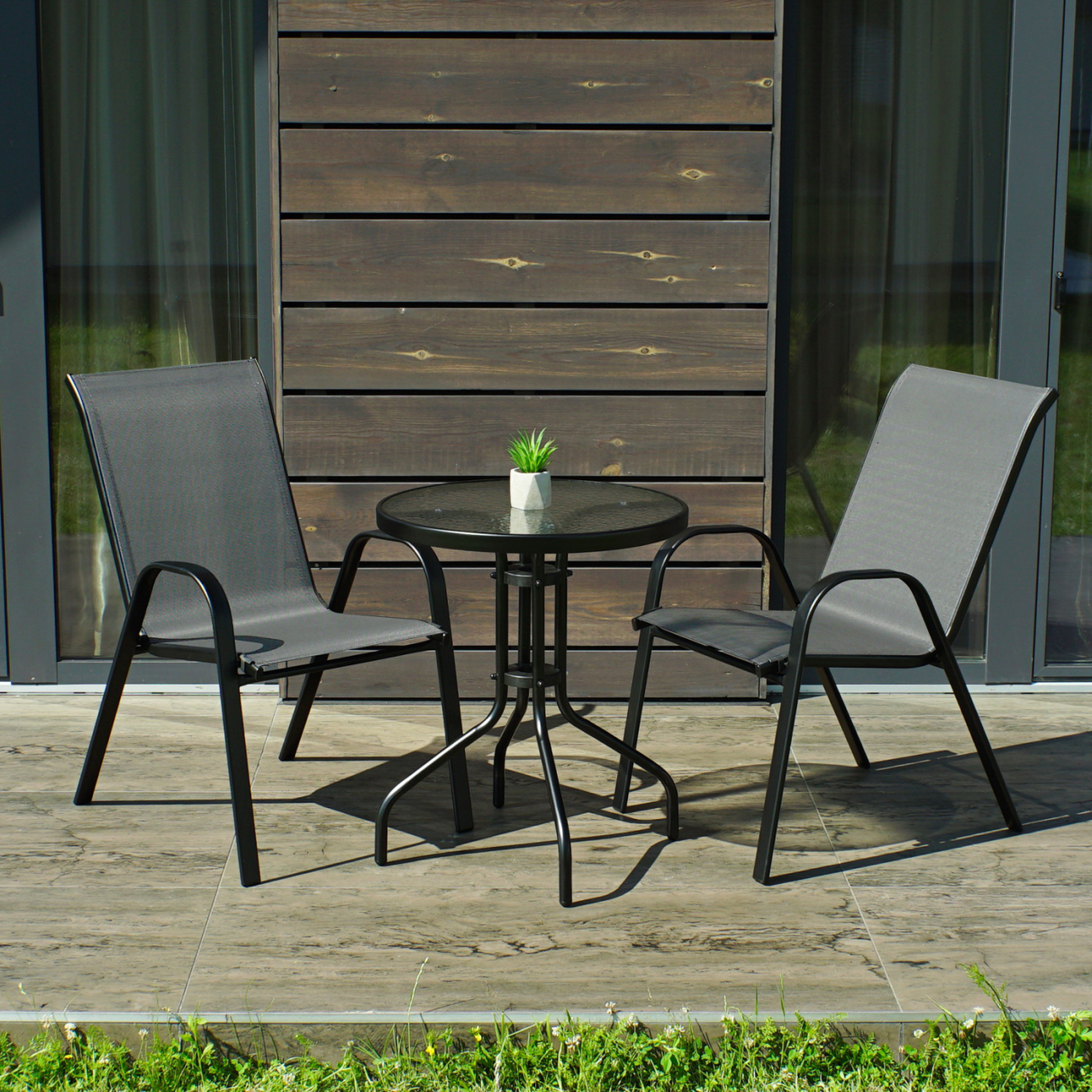 Набір садових меблів Udine-2: круглий стіл зі скляною стільницею 60 см та 2 стільці з текстилену для саду, тераси, балкона, кафе