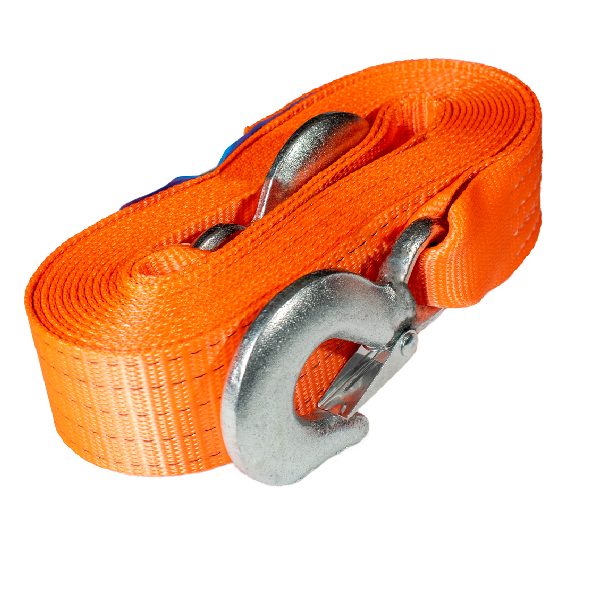 Стрічка буксирувального троса виготовлена з поліестеру, яка вирізняється високою міцністю і витривалістю. З двох кінців стрічки зафіксовані гаки, виготовлені з високоякісного металу.
