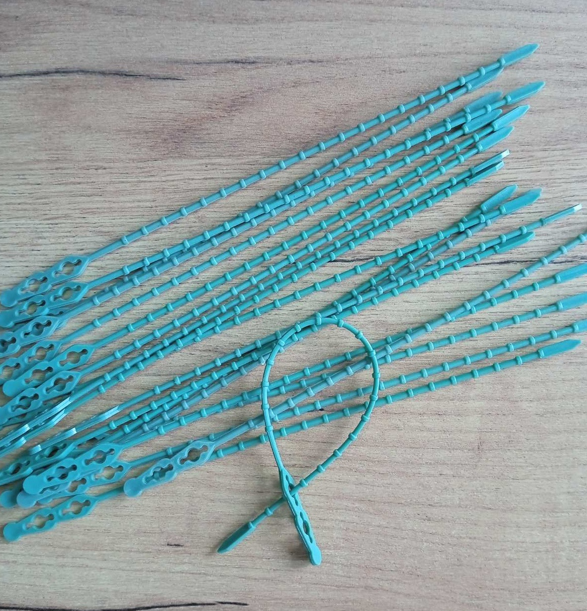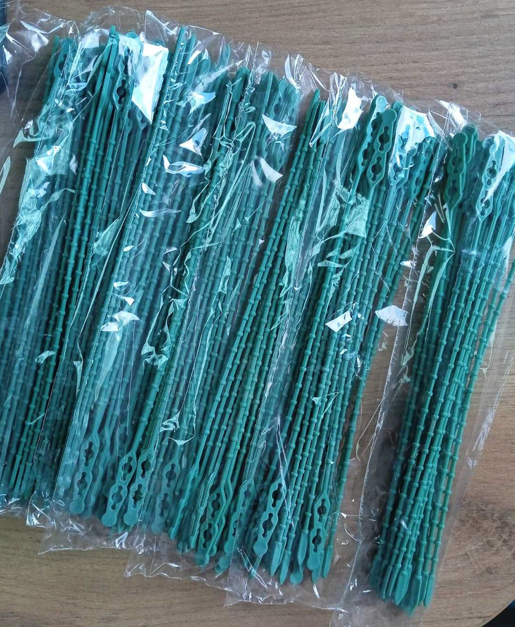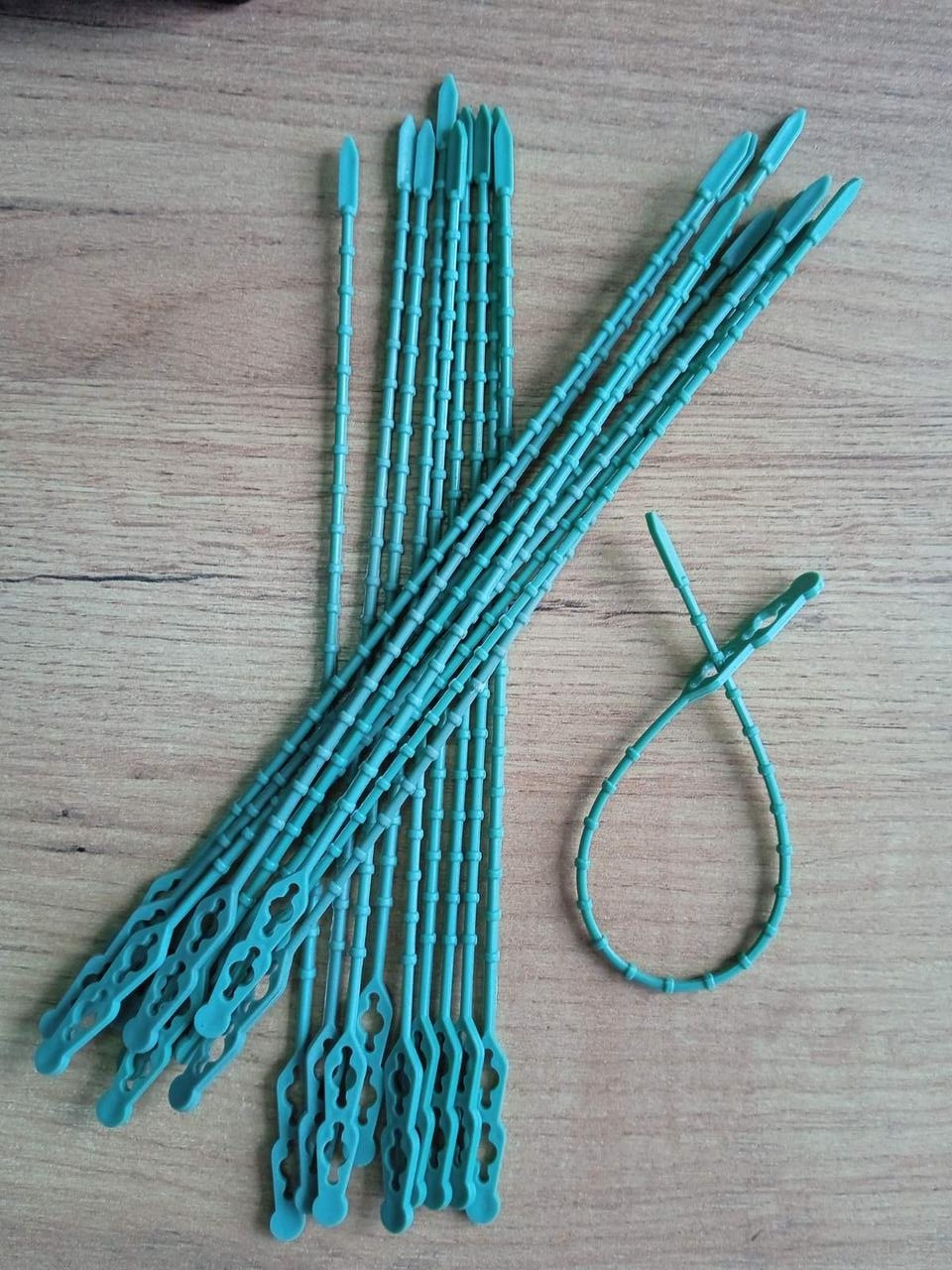Хомути садові виготовлені з пластику з додаванням ультрафіолетового стабілізатора. Стяжки м’які, гнучкі, дуже легкі у використанні. Завдяки зубчикам, які розподілені по всій довжині, ви можете регулювати охоплення, залежно від товщини стебла рослин. Хомути багаторазові, їх можна використовувати повторно.