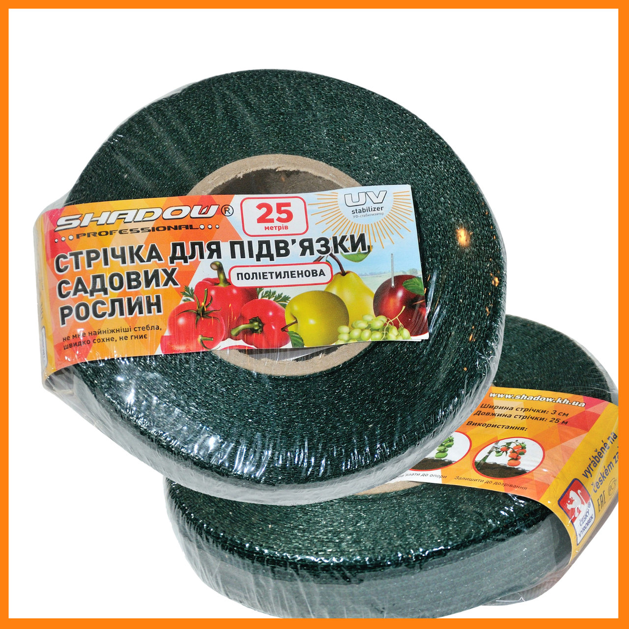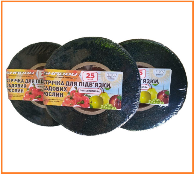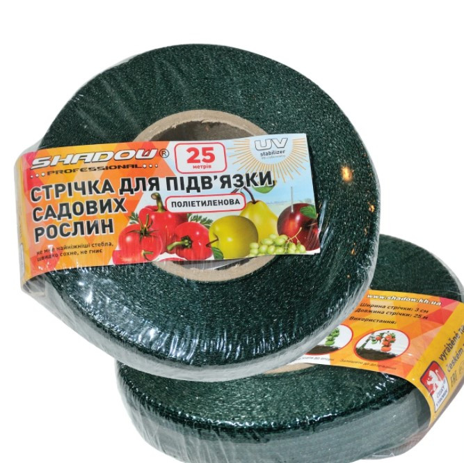 Стрічка призначена для підв’язування садових рослин виготовлена з поліетилену і має ширину 3 см, а довжина в бобіні становить 25 метрів.