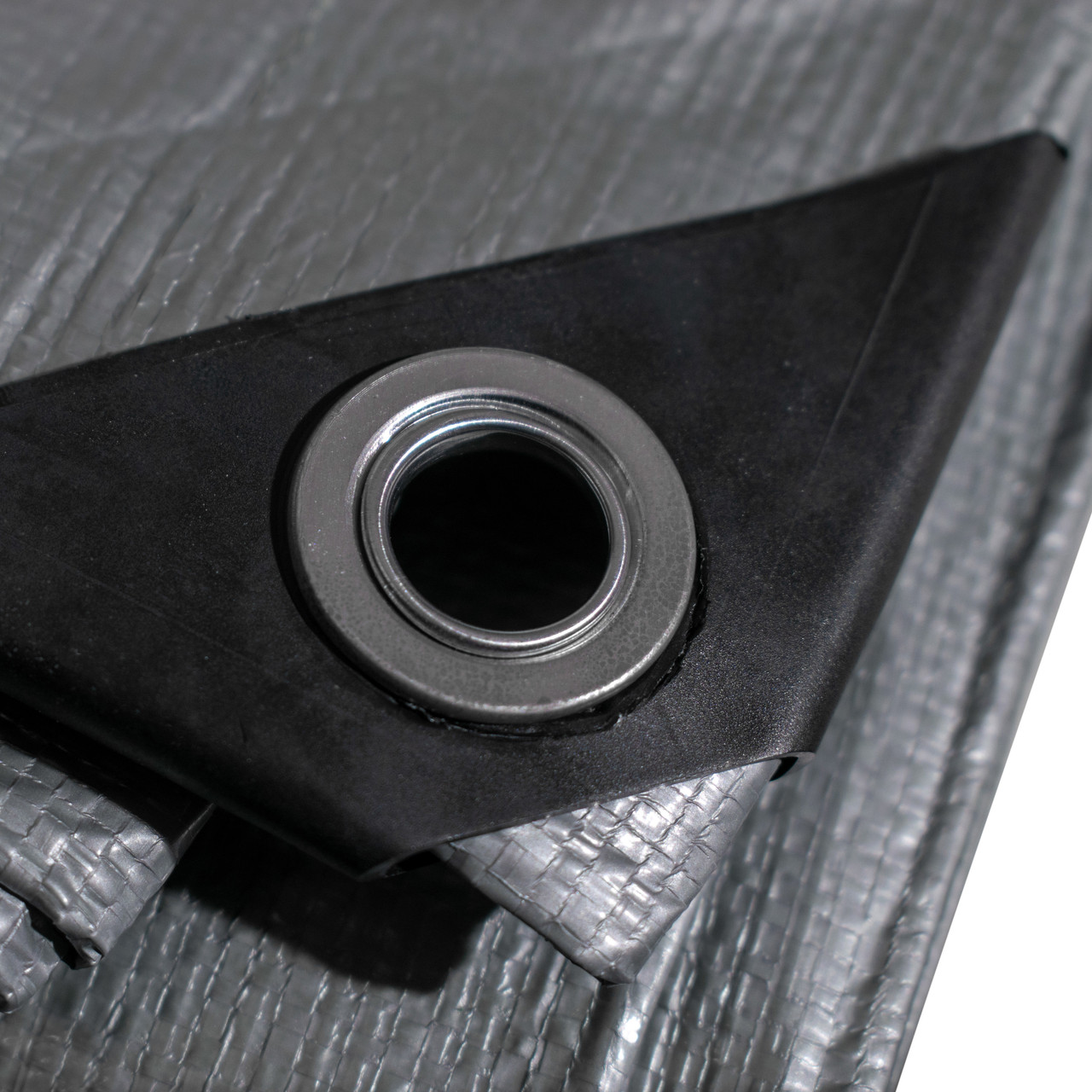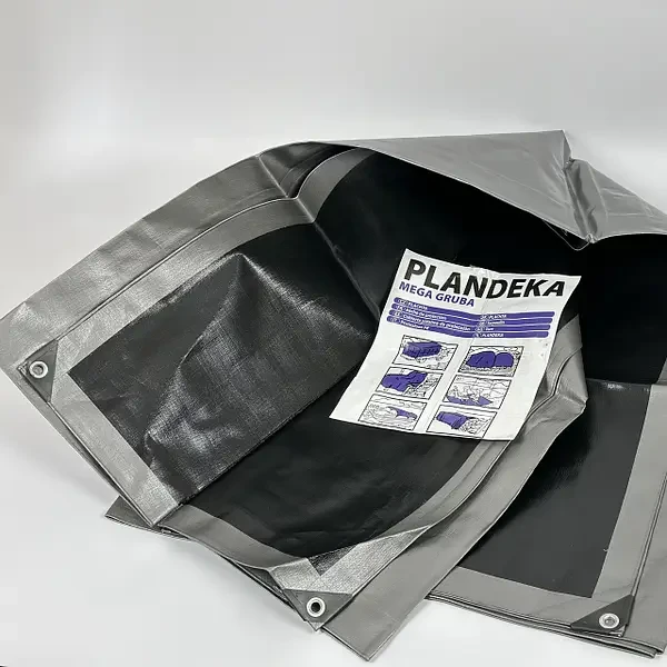 Тент представлений у сірому кольорі. Размер полотна — 6*10 м. Подвійна клейова смуга підсилює краї тенту, а металеві люверси периметром дають змогу використовувати шнур для закріплення.